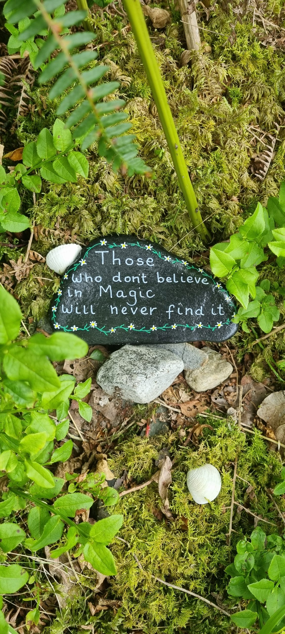 Sur le sentier côtier, l’ambiance est féérique. Les habitants de Mull ont mis des installations adorables pour les fées, des petites maisons, des portes, des rubans colorés et des mots sages.