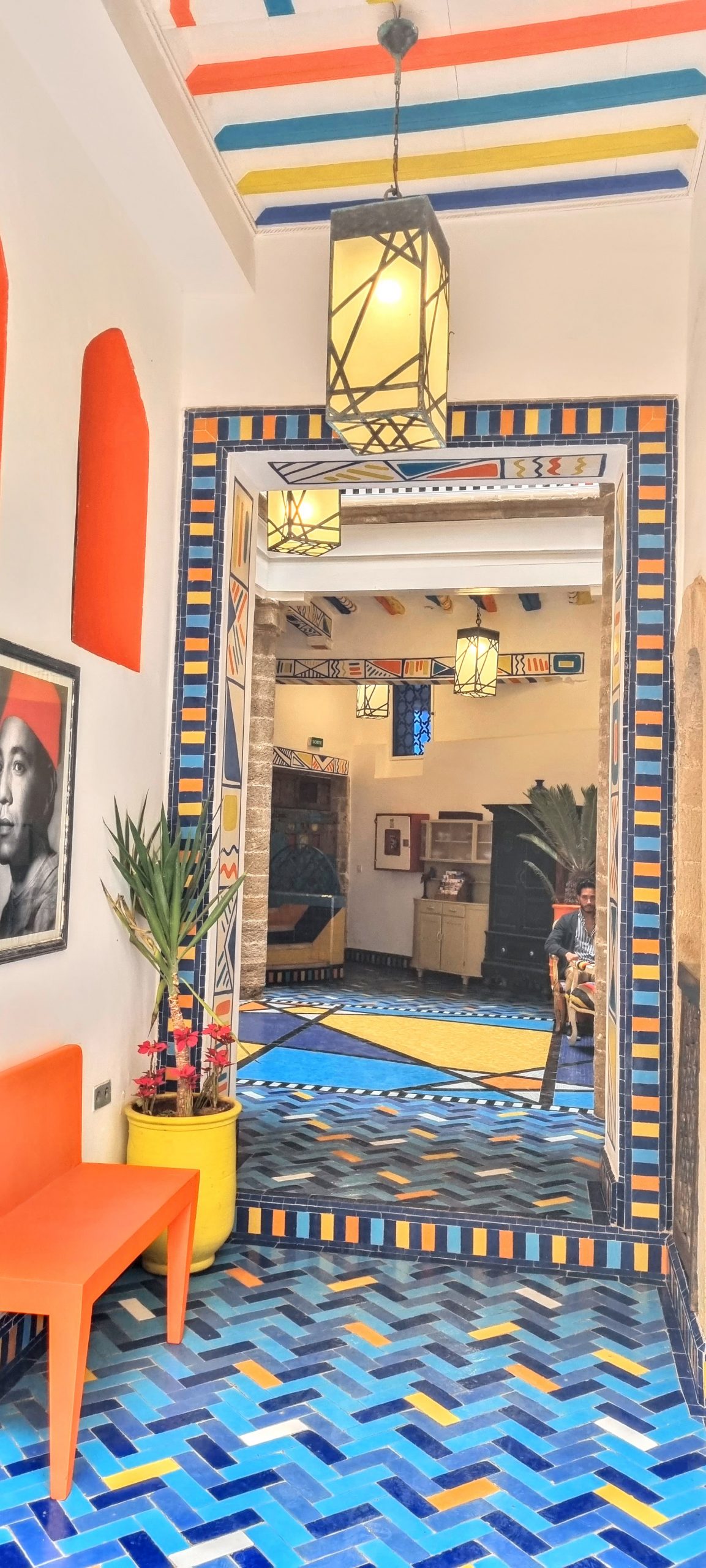 Visiter Essaouira sans expérimenter une nuit dans un riad serait dommage. Ces joyaux d’architecture sont typiques du Maroc. Caractérisés par un patio central souvent ornementé de colonnes, espaces où boire le thé et de fontaines. Sur leurs toits se trouvent des terrasses où l’on peut admirer Essaouira d’un point de vue différent. En général les terrasses sont accessibles 24/24h permettant de profiter de tous les visages de la ville. On peut déguster un petit-déjeuner ou un repas traditionnel et thé à la menthe dans la majorité des riads.