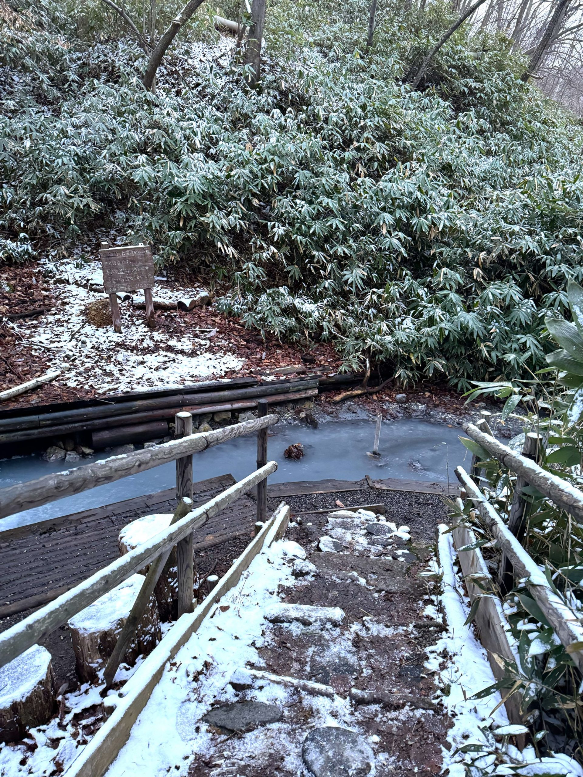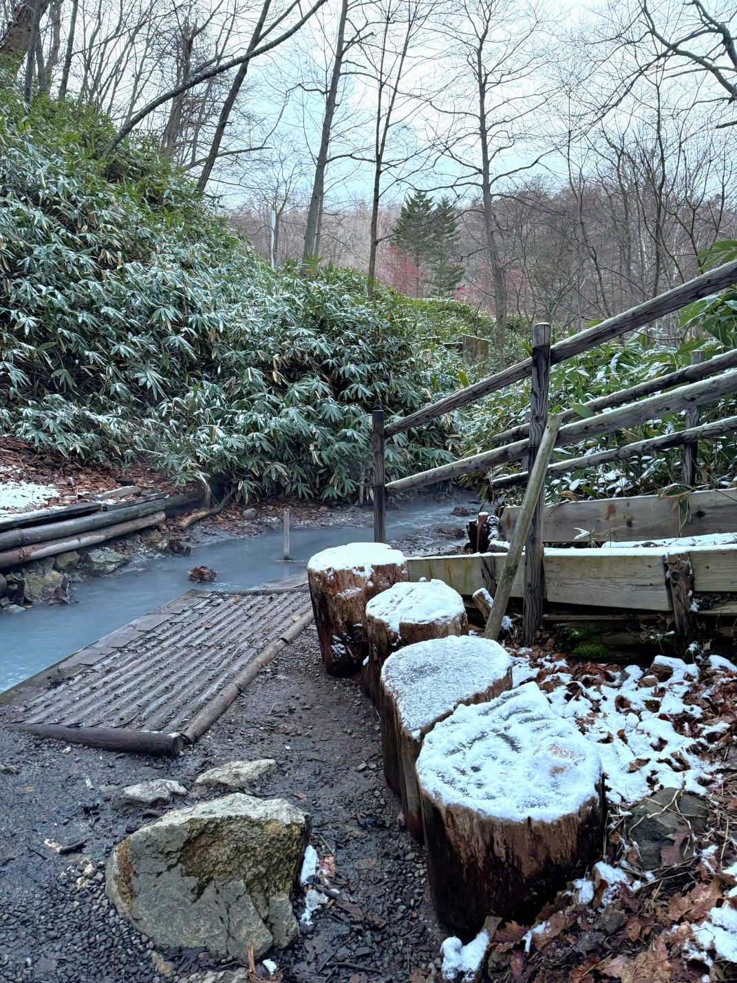 Vous pouvez profiter de bains de pieds gratuits dans les sources chaudes des villes thermales. Si vous n’aimez pas les onsen, vous trouverez peut-être ici votre bonheur. Ces bains de pieds s’appellent des ashiyu. Il est possible de se tremper les pieds n’importe quand. Vous n’avez qu’à enlever vos chaussures et plonger. Une petite serviette vous sera utile en hiver. Et à Noboribetsu onsen, il y a encore mieux qu’un ashiyu classique : le bain naturel de pieds! Directement à la source de la rivière Oyunuma. Cet endroit féérique est au milieu de la forêt. Sympathique en hiver quand on a les doigts de pieds congelés, n’est-ce pas?
